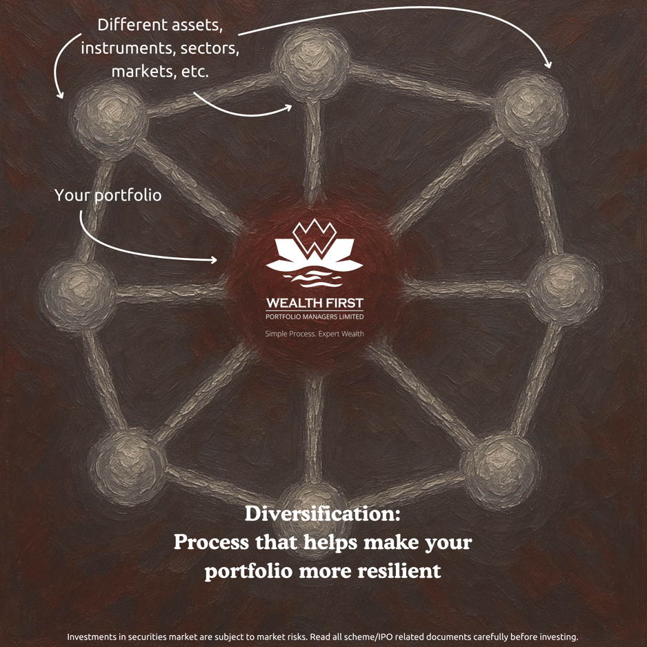 Diversification means spreading your investments across different assets, sectors, and markets so that no single event can drastically impact your overall wealth.