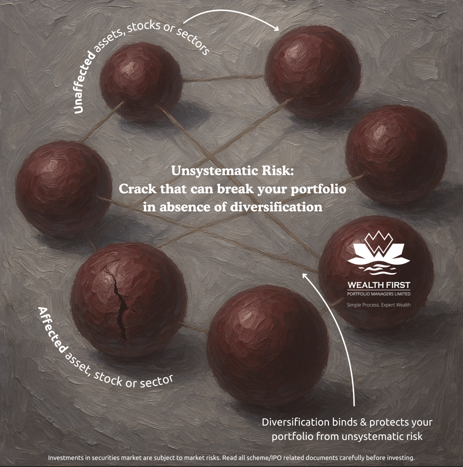 Wealth First explains how spreading investments shields you from the risks that target individual companies or sectors.